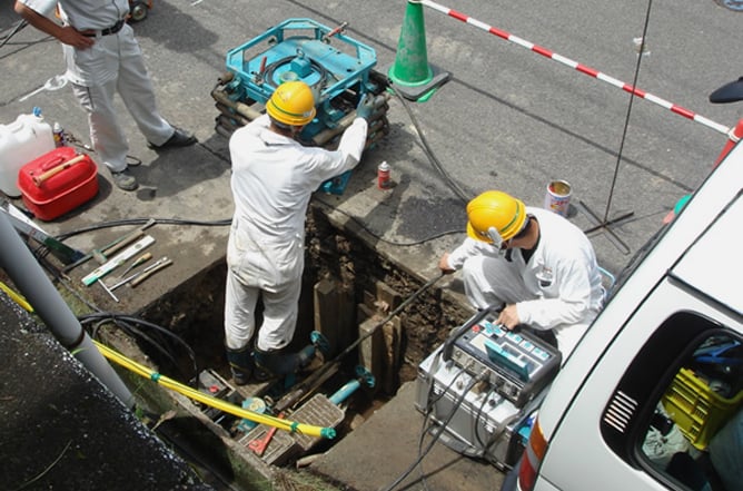 老朽化した下水道管や水道管を、掘削せずに内側から補修・補強するのが管更生工事です。交通や周辺環境への影響を抑えながら、既設管の機能を再生できることから、維持管理の効率化やコスト削減に効果を発揮します。近年は環境負荷の軽減や施工のスピード面でも注目されており、今後のインフラ整備において欠かせない工法のひとつであり、多くのご依頼をいただいています。