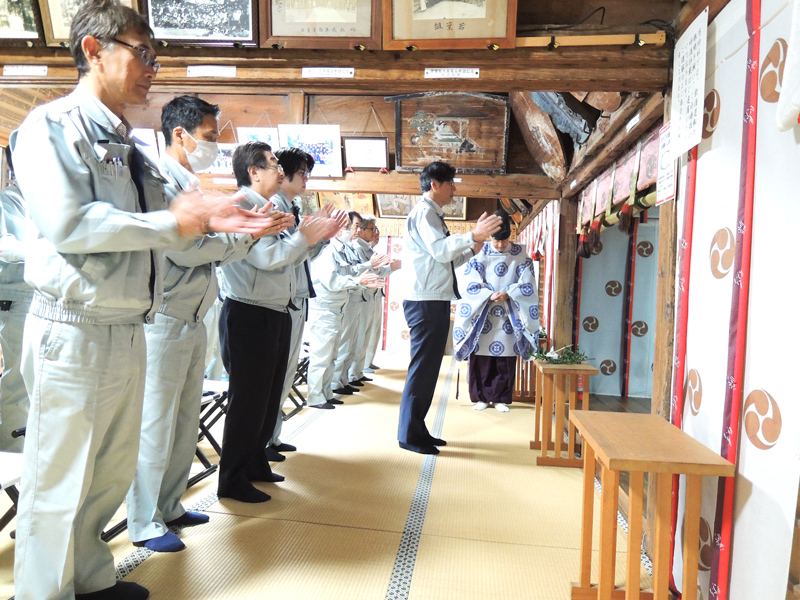 2025/10/09 安全祈願祭 開催 2025年10月9日(木)9:00~9:30 福島市指定文化財飯坂温泉総鎮守 八幡神社にて 10月9日(木)午前9時00分より各現場合同の安全祈願祭を飯坂八幡神社にて執り行いました。現場代理人及び課長以上が出席し、各工事の無事を祈願致しました。