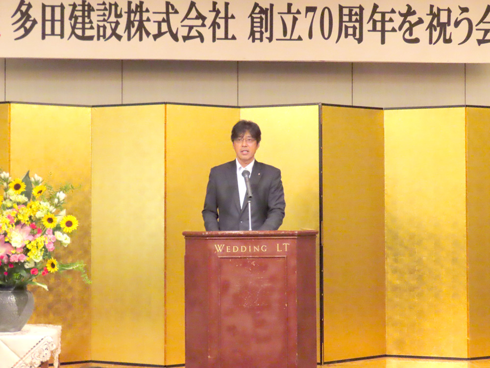 多田建設株式会社は、2019年9月12日をもちまして、70回目の創立記念日を迎えることができました。これもひとえに、諸先輩方や、支えてくださった皆様方のお力によるものと、社員一同、感謝申し上げます。当社では、これを記念して、「創立70周年を祝う会」を行いました。