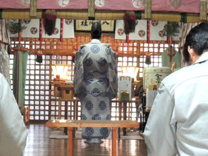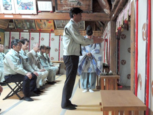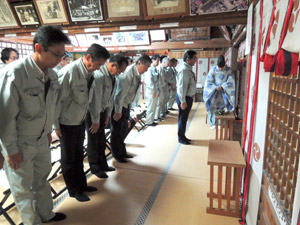 10月18日(木)午前9時00分より各現場合同の安全祈願祭を飯坂八幡神社にて執り行いました。現場代理人及び課長以上が出席し、各工事の無事を祈願致しました。