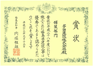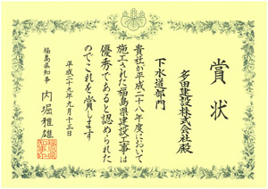 当社施工の工事が、舗装部門・下水道部門の2部門で優良工事として表彰されました。