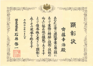 顕彰名 優秀施工者(建設マスター)