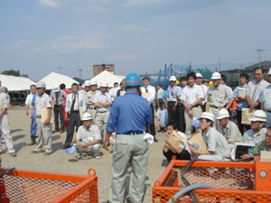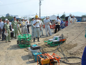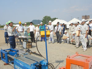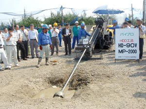 誘導式水平ドリル(HDD)工法にバイブロ機能を搭載したバイブロHDD工法の説明会を開催し、デモ施工も実演しました。発注者、コンサルタント、施工業者他、100名を超える方々に御参加頂きました。