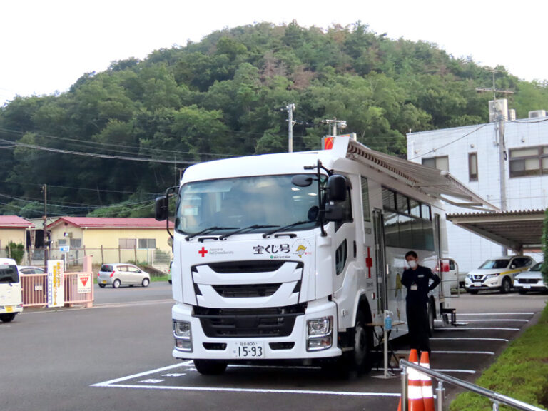 本社駐車場に献血バスに来て頂き、14名が献血協力できました。
