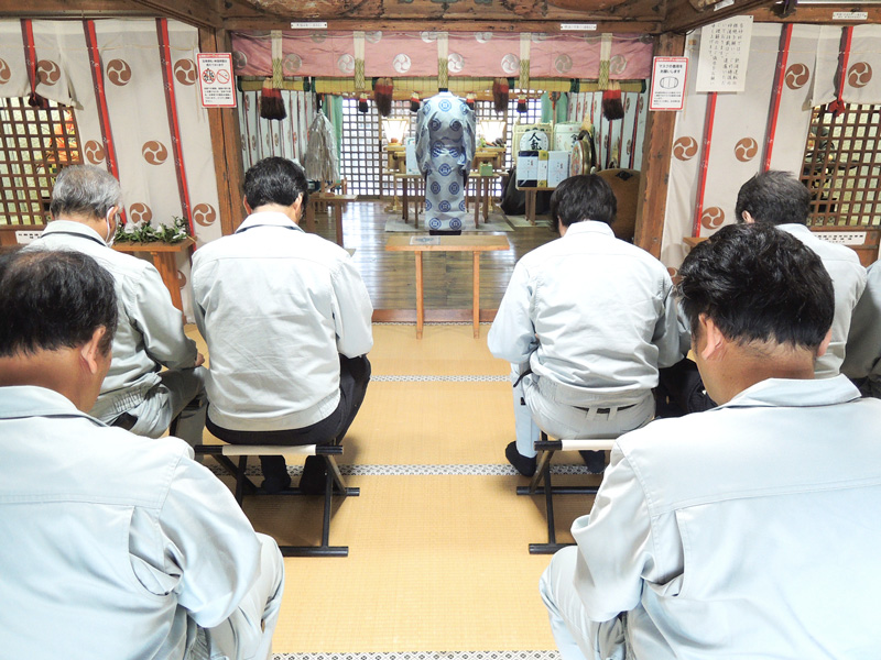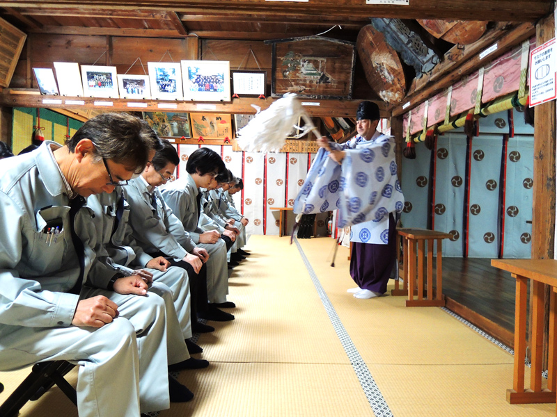 10月9日(木)午前9時00分より各現場合同の安全祈願祭を飯坂八幡神社にて執り行いました。現場代理人及び課長以上が出席し、各工事の無事を祈願致しました。