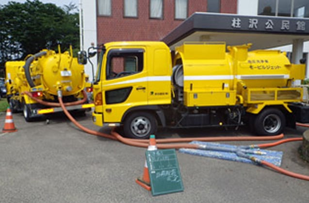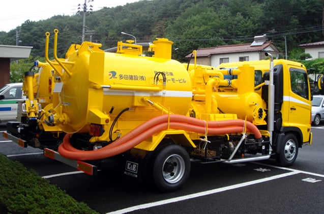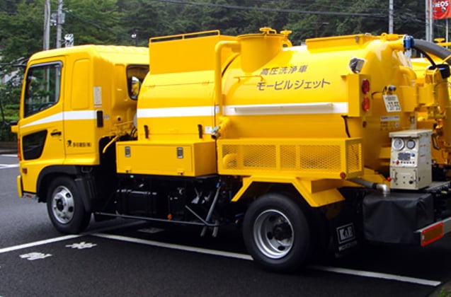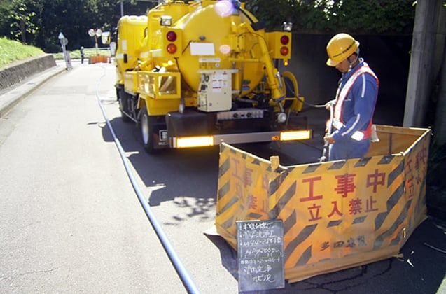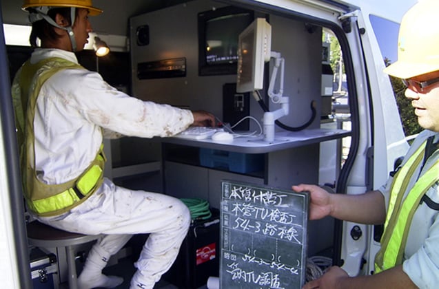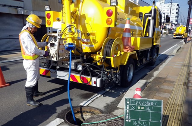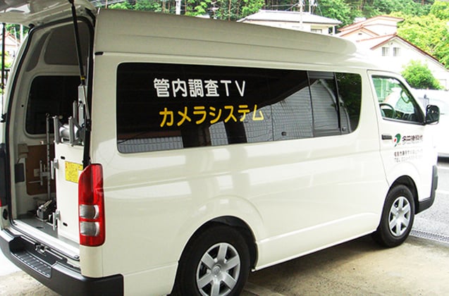 専用のカメラ車と高圧洗浄車を自社で保有し、管内の調査を行っています。