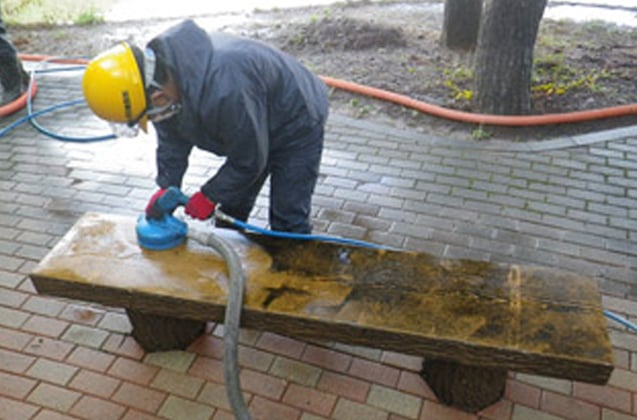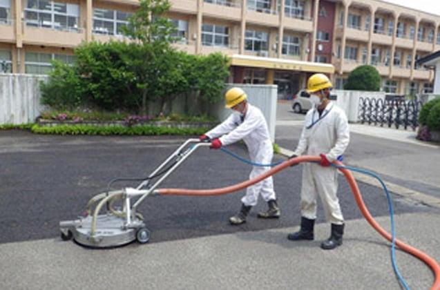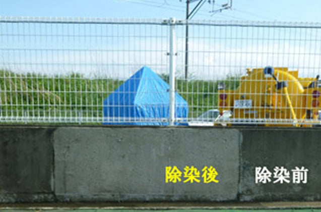 一日の施工能力は平面除染で500m2、道路部の舗装面除染は300m2行うことができます。また、壁面除染等のミニターボでも200m2の施工を可能としています。