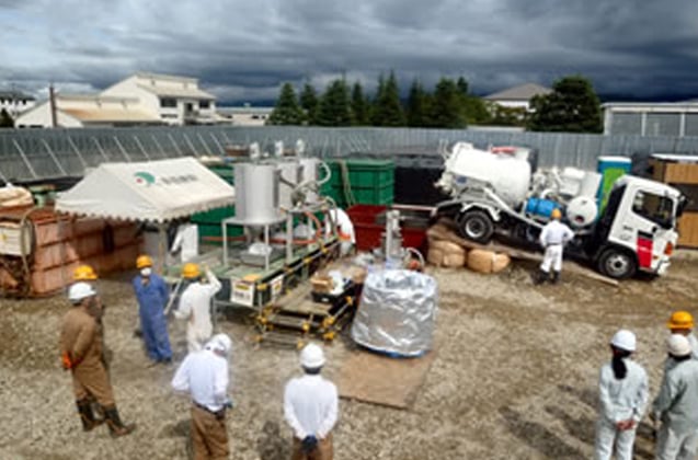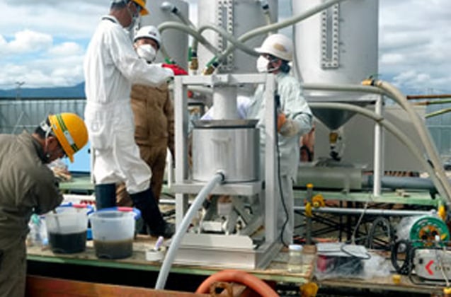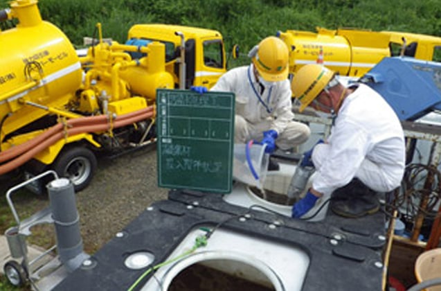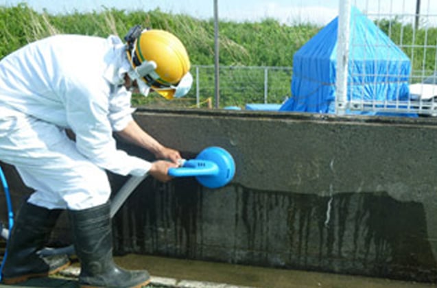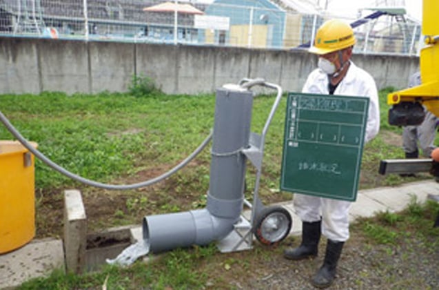 排水基準値については、現在0~10Bq/Kg程度で排水可能な処理プラントとしております。強力吸引車内に残った土砂等は、その場でフレコンパック、麻袋等に保管します。