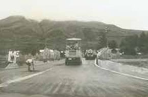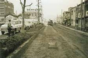 創業初年度に受注した玉野村開拓道路工事(隧道巻き立て)を皮切りに、本宮駅前や梁川町県道などのコンクリート舗装工事を手がけました。当時は、主要道路はすべてコンクリート舗装で整備されるのが一般的でした。