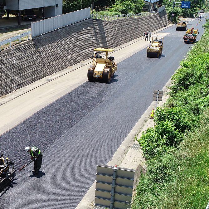これまでに培った技術と信頼をもとに、観光道路や主要幹線道路など、地域の重要インフラ整備を担ってきました。福島県北部を中心に、確かな施工品質と柔軟な対応力を強みに、現在も舗装工事を通じて地域に貢献し続けています。