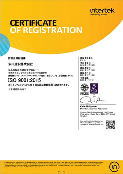 顧客のニーズに応え、良い仕事をして、顧客の信頼に応えると共に、要求事項への適合及び品質マネジメントシステムの有効性の継続的な改善を行っていく。この品質方針を達成するために、各部門は、それぞれの活動に応じて、具体的な品質目標を設定し、その達成活動を展開する。
