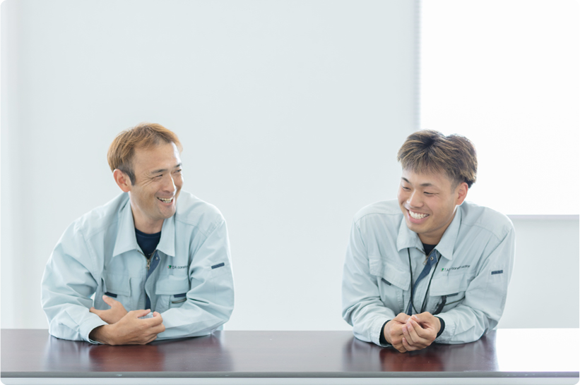 現場の他の作業員から、「彼、成長したね」と声をかけてもらうこともありました。コミュニケーションを取ることで、周囲に質問しやすくなり、仕事も覚えやすくなる。リラックスした状態で教わる方が身につくことは多いと思います。