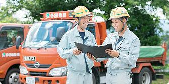 私自身、一般的な舗装工事などだけでなく、特殊な工事を多く経験してきました。彼にも色んな現場に携わってもらっています。最近は現場代理人にもなったよね?
