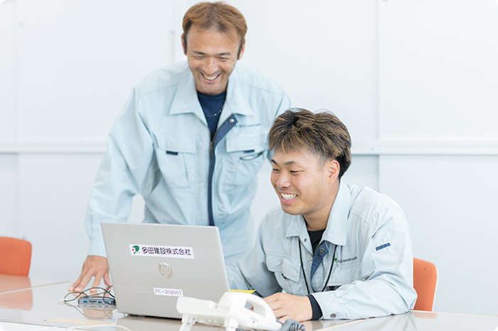 これからは、ぜひ1人で多くの現場を持ってもらいたいと思っています。それなりの責任と仕事量がありますが、彼なら大丈夫。成長すれば責任と仕事の重さも伴いますが、困った時に誰にでも助けを求められるような人間関係を築いていくことが大切です。