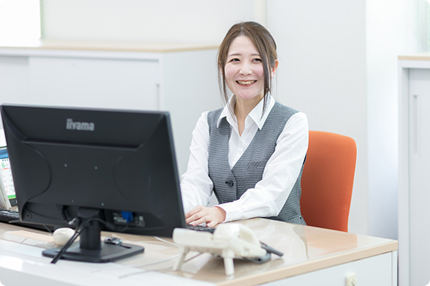 先ほどお話しした業務内容に加え、ISO関連の業務も工事部で行っており、基本的にすべての業務は一人で回しています。入社当初は先輩の女性事務員から業務を引き継ぎ、少しずつ慣れていきました。工事部の皆さんがスムーズに仕事を進められるよう、日々、様々なサポートを行っています。まさに工事部の“何でも屋”のような存在ですね。日中も工事部からの急な依頼に対応するなど、臨機応変な対応が求められます。