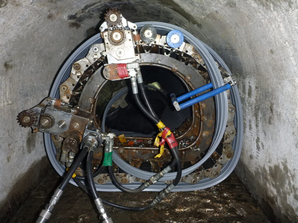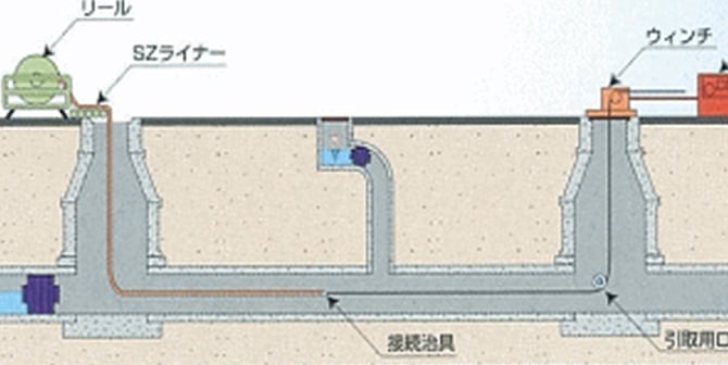 ウィンチでSZライナーを既設管きょ内に引き込みます。