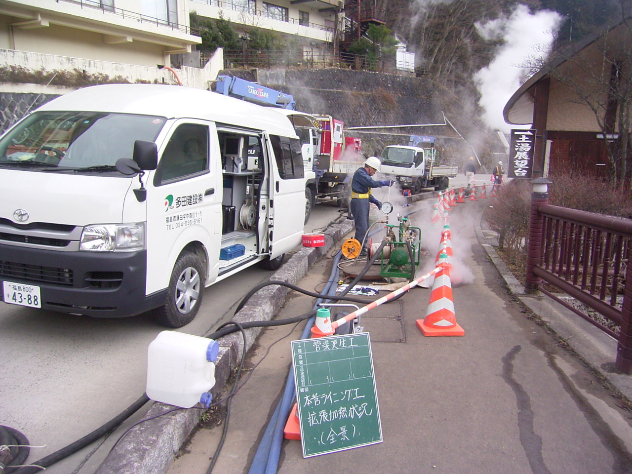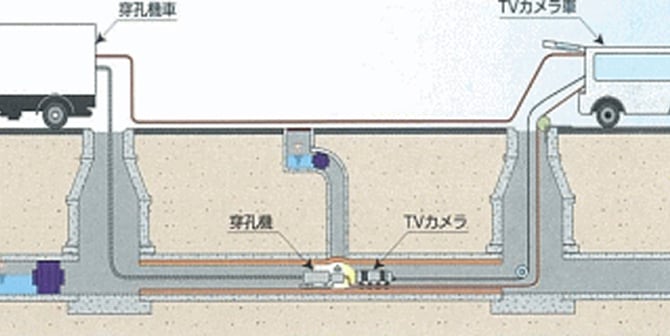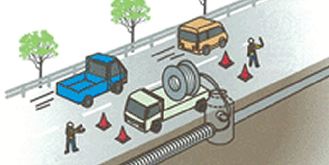 機材は全てマンホールから管路内に入れるため、道路を掘り起こすことなく、施工できます。