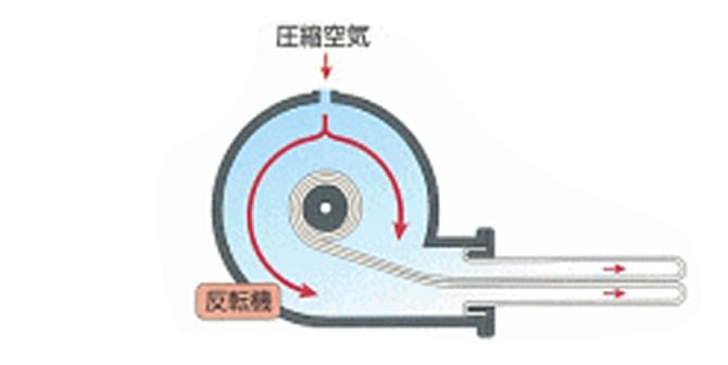 シールホースの先端が、圧力の作用を受け反転しようとします。