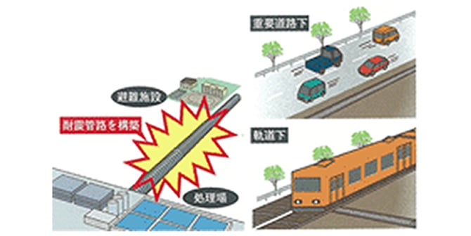 避難施設と処理場間の管きょや国道など重要道路下、軌道下などの管きょ施設の耐震対策として最適です。