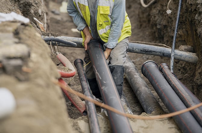 地面を掘らずに配管を直す「管更生工法」や「小口径推進工法」を活用し、老朽化した配管の機能維持と漏水リスクの低減を推進しています。