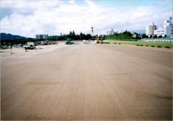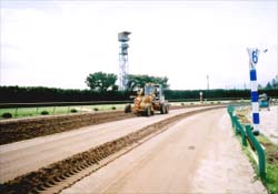 | 主な工種 | このダートコースは中央競馬初の1150mとなります。 これまで、ダートは1000mと1700mだけでしたが、短距離の1150mは1150mのコースは、第2コーナーから奥に下がった地点にスタートを置き、芝コースを横切ってダートに入り、第3・第4コーナーを回って、ゴールとなります。長距離では、2400mのレースも組まれるようです。 |