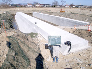 | 主な工種 | 河川土工 1式 掘削工 640m³ 床固工 1式 作業土工 1式 床固本体工 542m³ 垂直壁工 221m³ 水叩工 107m³ |