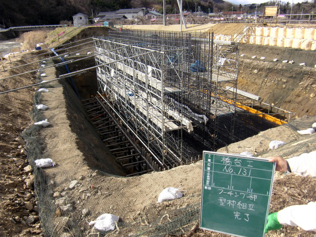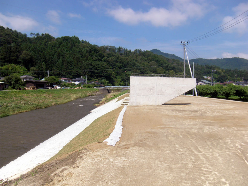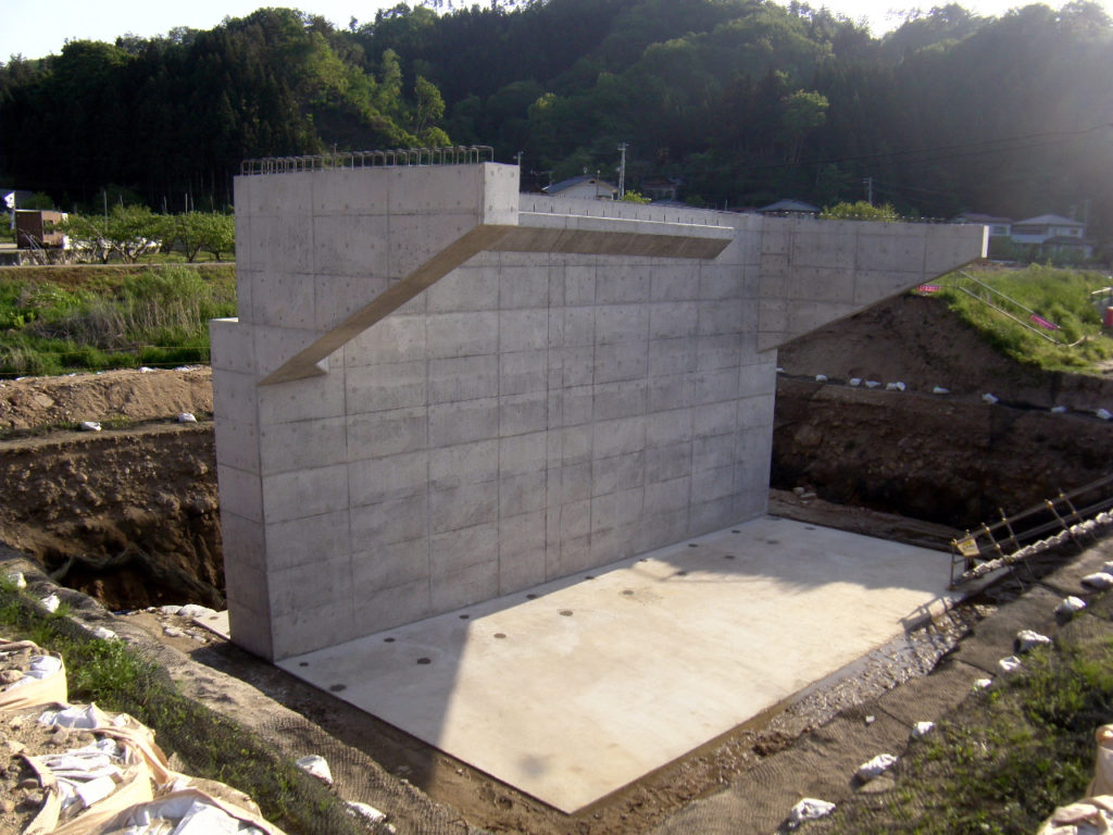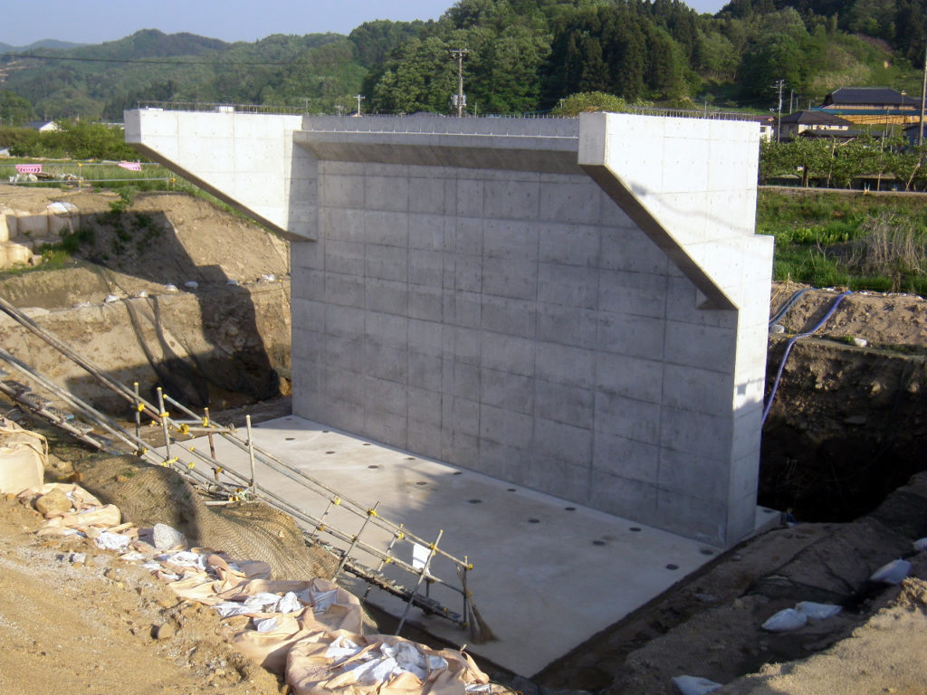 | 主な工種 | 橋台工 作業土工 1式 橋台躯体工 438.55m³ 護岸工 コンクリートブロック工 1式 護岸付属物工 1式 取付道路工 1式 |