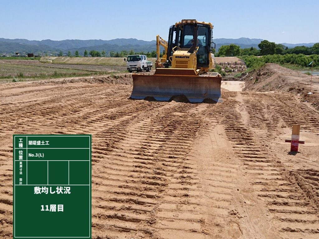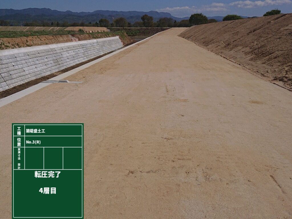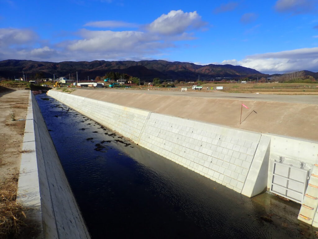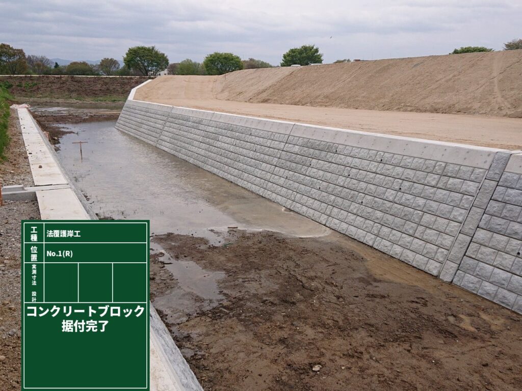 | 主な工種 | 築堤工 V=6,072m3 コンクリートブロック積 A=1,017m2 |