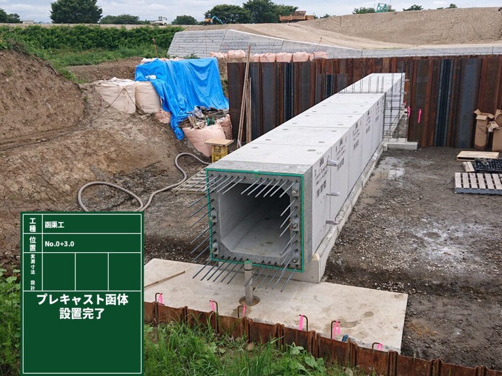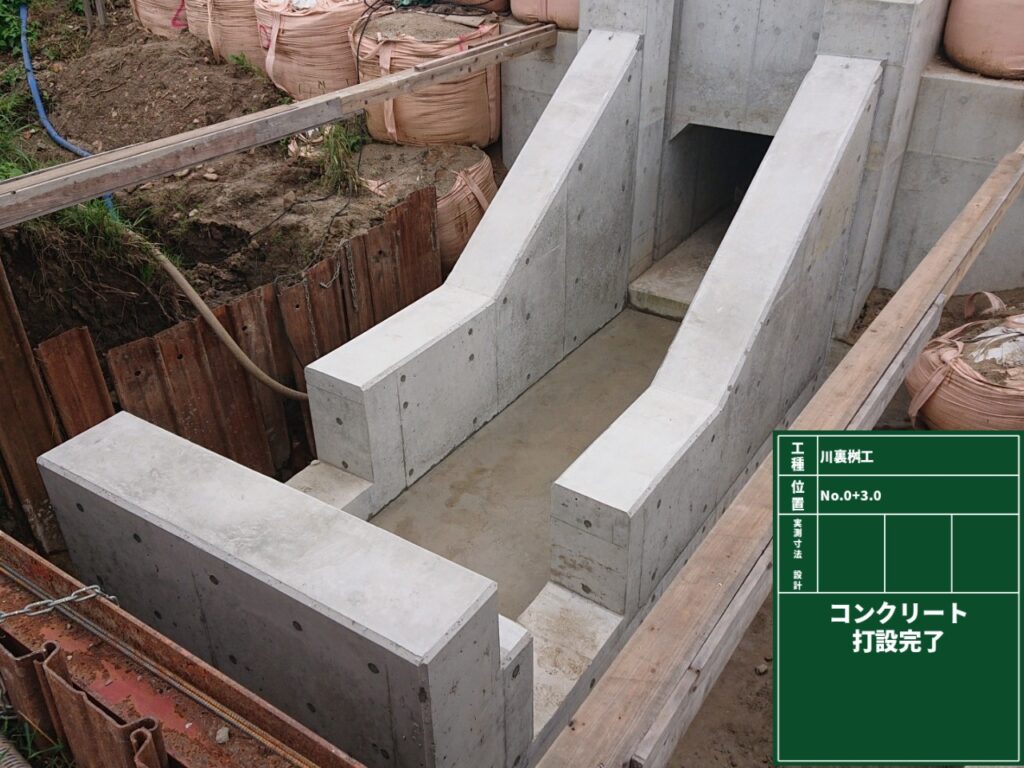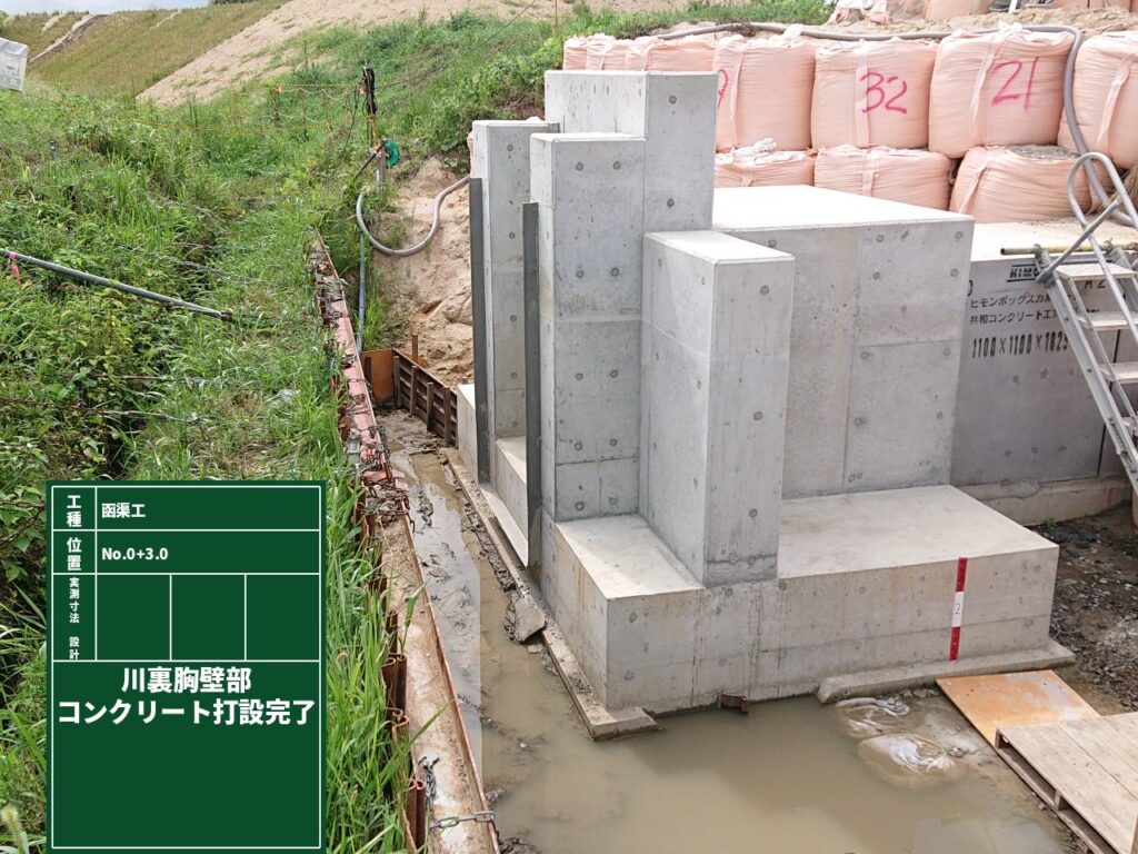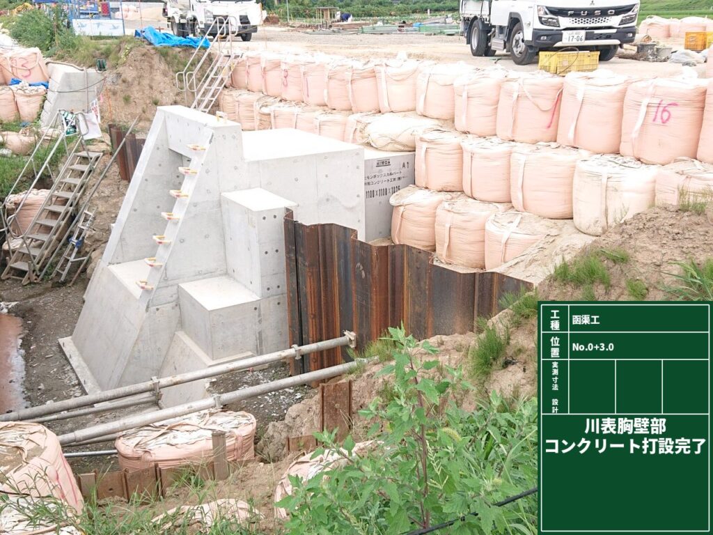 | 主な工種 | 築堤工 V=6,072m3 コンクリートブロック積 A=1,017m2 |
